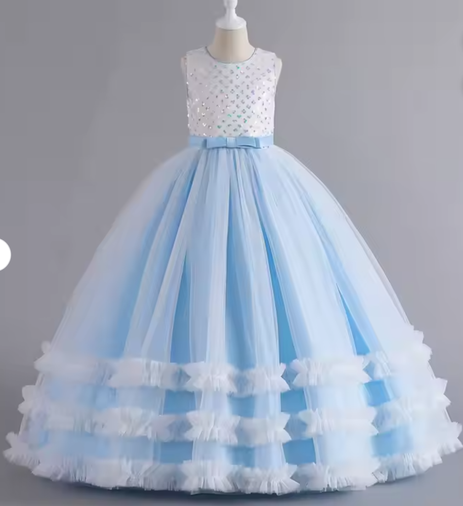 فستان الاميرات الصغيرات باللون السماوي والوردي